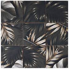 Bati Orient Tile - Ceramic Floral Palm 4"x4" Mosaic Tile - Grey, Beige